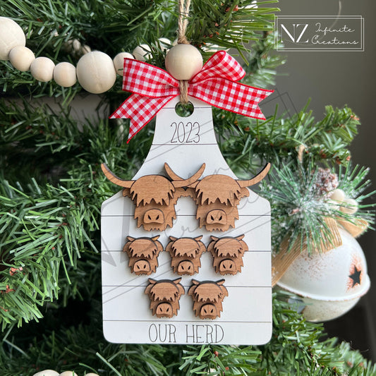 Highland Cattle Personalized Family Wooden Cow Tag - Ornament