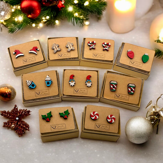 Whimsical Gnome Christmas - Wood Stud Earrings