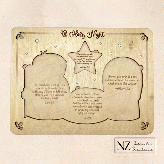 Hand-Painted Wooden Nativity Puzzle - 'O Holy Night' - Baby Jesus, Joseph, and Mary